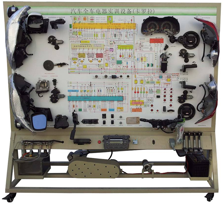 汽車電氣設(shè)備實(shí)訓(xùn)室。汽車電器設(shè)備實(shí)訓(xùn)室包含有汽車燈光系統(tǒng)、車載網(wǎng)絡(luò)系統(tǒng)、全車電器系統(tǒng)、汽車啟動(dòng)系統(tǒng)、汽車空調(diào)系統(tǒng)、全車線路試驗(yàn)臺(tái)、等實(shí)訓(xùn)教學(xué)設(shè)備。該實(shí)訓(xùn)室可以承擔(dān)《汽車構(gòu)造》、《汽車電器設(shè)備》、《汽車電控系統(tǒng)》、《汽車檢測(cè)與診斷》等課程的實(shí)踐教學(xué)任務(wù)?梢杂糜谘芯俊⒎治鋈囯娖飨到y(tǒng)、燈光系統(tǒng)、儀表系統(tǒng)等電器設(shè)備的電路及功能。利用這些系統(tǒng)進(jìn)行實(shí)踐教學(xué),使學(xué)生熟悉汽車電器的結(jié)構(gòu)和工作原理,掌握各個(gè)系統(tǒng)的基本組成電路,掌握主要電路的檢測(cè)方法和系統(tǒng)的故障特征,從而具有一定的檢測(cè)和調(diào)校能力。
