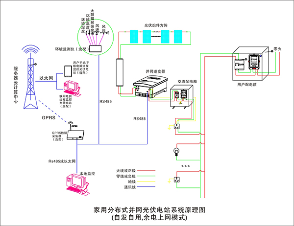 太陽電池組件在太陽光的照射下產(chǎn)生直流電流;太陽能控制器則協(xié)調(diào)太陽能電池板、蓄電池和負載的工作,具有自動防止儲能蓄電池過充電和過放電的功能。蓄電池在系統(tǒng)中的作用就是存儲能量,還能對系統(tǒng)起著調(diào)節(jié)電量、穩(wěn)定輸出的作用。逆變器的作用是將蓄電池的直流電轉(zhuǎn)變?yōu)檫m合負載使用的正弦波交流電,逆變器輸出的交流電能進入配電柜;在配電柜內(nèi)裝有用于輸出控制、過流保護、防雷保護等器件。