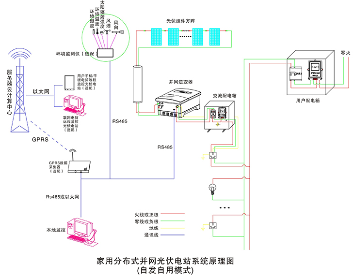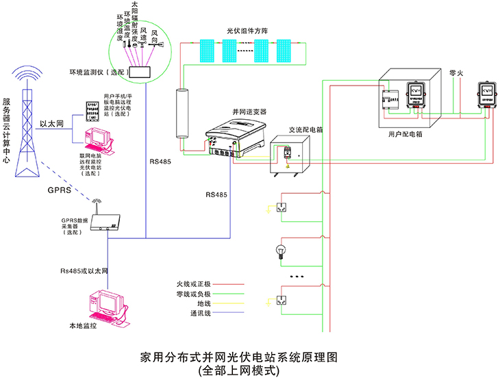 在晴朗的白天,裝在屋頂上的光伏組件發(fā)出的直流電經(jīng)過并網(wǎng)逆變器逆變成與電網(wǎng)同頻率同相位的單相交流電給負(fù)載進(jìn)行供電,在夜晚或陰雨天等太陽(yáng)光照不足的情況下,系統(tǒng)處于待機(jī)狀態(tài),負(fù)載用電全部來自電網(wǎng)。您可以通過系統(tǒng)監(jiān)控軟件來實(shí)時(shí)查看系統(tǒng)的運(yùn)行狀態(tài)和故障信息,或者是選配遠(yuǎn)程通訊數(shù)據(jù)采集器,將系統(tǒng)工作數(shù)據(jù)通過GPRS或以太網(wǎng),傳輸?shù)侥氖謾C(jī)、平板電腦或任意一臺(tái)聯(lián)網(wǎng)的電腦,以便于您遠(yuǎn)程實(shí)時(shí)掌控電站的信息。