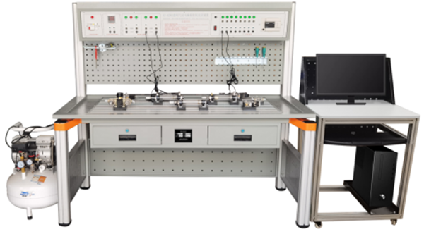 實(shí)驗(yàn)臺由實(shí)驗(yàn)桌、實(shí)驗(yàn)操作區(qū)、網(wǎng)孔工具掛板、靜音氣泵、常用氣動元件、主控機(jī)箱、電腦桌等幾部分組成。