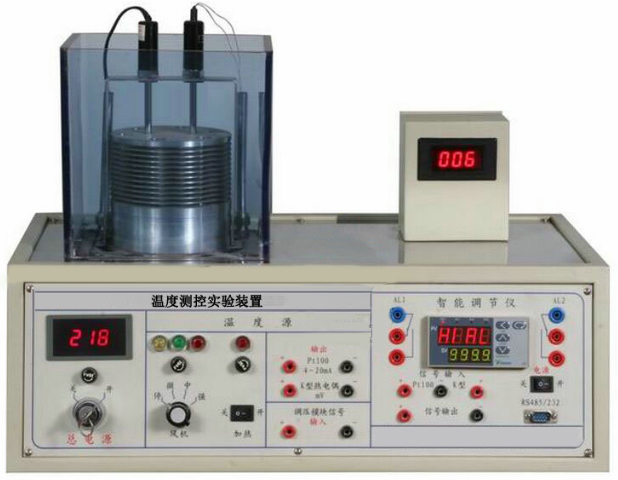 1、溫度測(cè)控實(shí)驗(yàn)裝置,實(shí)驗(yàn)溫度范圍0-100℃,可快速升溫,快速降溫。其重要結(jié)構(gòu)特點(diǎn)是微小、緊湊、美觀、安全。裝置由實(shí)驗(yàn)溫度箱、加熱器、可控硅調(diào)壓模塊、K型溫度傳感器及Pt100傳感變送器等組成?梢院PLC組成溫度檢測(cè)和閉環(huán)PID調(diào)節(jié)溫度控制系統(tǒng)。