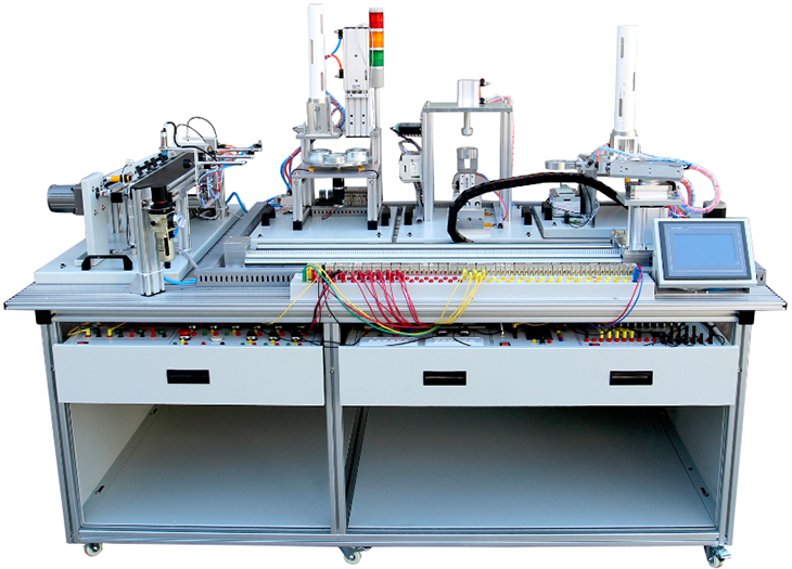 一體化自動生產(chǎn)線系統(tǒng)實訓(xùn)裝置綜合應(yīng)用了多種技術(shù)知識,有氣動控制技術(shù)、機(jī)械技術(shù)、傳感器技術(shù)、PLC控制技術(shù)、步進(jìn)電動機(jī)位置控制和變頻技術(shù)等,模擬一個與實際生產(chǎn)情況十分接近的控制過程,可以提高學(xué)生的綜合技能。