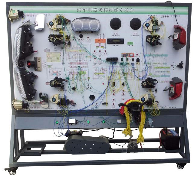 3.設(shè)備面板采用耐創(chuàng)擊、耐污染、防火、防潮的高級鋁塑板,表面經(jīng)特殊工藝噴涂底漆處理;面板打印有永不褪色的彩色電路圖;學(xué)員可直觀對照電路圖和實物,認(rèn)識和分析汽車整車電器各系統(tǒng)的工作原理。