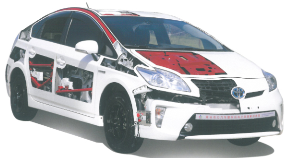 車身解剖部位:對(duì)半解剖,副座側(cè)2車門內(nèi)外解剖(運(yùn)行件外可觀察);前蓋對(duì)對(duì)半解剖(外可觀察電機(jī)與變速器運(yùn)行);后蓋對(duì)對(duì)半解剖(外可觀察行李箱內(nèi)部器件);前后保險(xiǎn)桿對(duì)半解剖;