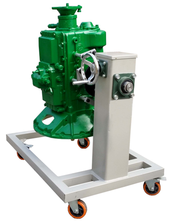 采用減速翻轉(zhuǎn)機構(gòu),可使變速器旋轉(zhuǎn)任意角度,并能任意位置鎖止,便于學生從不同的角度進行拆卸和裝配。