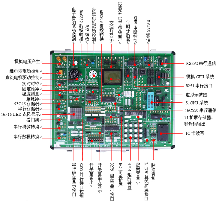 含箱體、電源、51系統(tǒng)和88系統(tǒng)以及標(biāo)配實驗電路 |