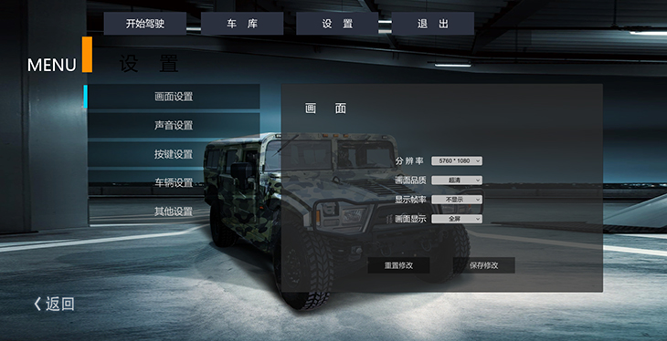 7.2、汽車設(shè)置界面:調(diào)整車輛各項動力學參數(shù)、車輛后視鏡及視角調(diào)整。