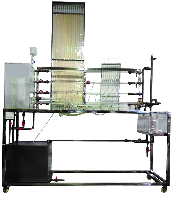 雷諾實驗管、伯努利實驗管、沿程阻力管、局部阻力管、水泵、秒表、玻璃溫度計、測壓計、刻度標尺、文丘里流量計、實驗水箱、計量水箱、蓄水箱、指示液盒、不銹鋼框架。