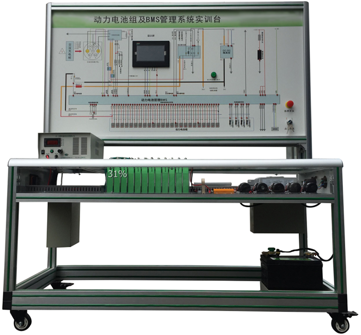 選用新能源車輛 磷酸鐵鋰 動(dòng)力電池包,單體電池(3.2V20AH,共24串),帶CAN總線的一體機(jī)BMS電池管理系統(tǒng),有被動(dòng)均衡功能;真實(shí)地呈現(xiàn)了磷酸鐵鋰動(dòng)力電池包核心零部件之間的連接控制關(guān)系、安裝位置和運(yùn)行參數(shù),以及高壓系統(tǒng)安全注意事項(xiàng),并培養(yǎng)學(xué)員對磷酸鐵鋰動(dòng)力電池包(BMS)故障分析和處理能力。適用于了解與驗(yàn)證電動(dòng)汽車的動(dòng)力電池參數(shù)進(jìn)行實(shí)時(shí)監(jiān)控、故障診斷、SOC估算、短路保護(hù)、絕緣檢測、充放電控制、均衡等功能,并通過CAN總線的方式與帶CAN通訊的車載充電機(jī)進(jìn)行信息交互,保障電動(dòng)汽車高效、可靠、安全運(yùn)行的BMS教學(xué)實(shí)訓(xùn)實(shí)驗(yàn)。