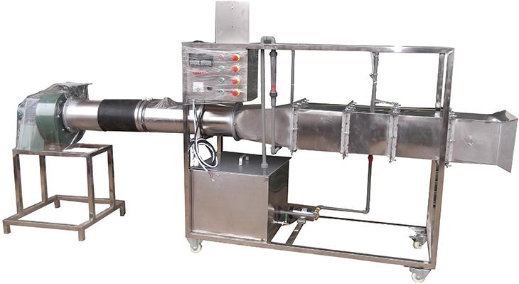 循環(huán)防腐水泵,轉(zhuǎn)子流量計(jì)、風(fēng)冷冷凝器,翅片管式換熱器,風(fēng)洞實(shí)驗(yàn)段,多翼式低噪音離心風(fēng)機(jī),自動(dòng)調(diào)節(jié)風(fēng)門,笛形管及差壓測(cè)風(fēng)速裝置,加熱由固體調(diào)壓模塊無級(jí)調(diào)節(jié),控制測(cè)試儀表箱,不銹鋼加熱水箱,8路萬能信號(hào)輸入巡檢儀顯示溫度、水和風(fēng)的阻力及風(fēng)速。