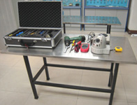 在操作臺上進(jìn)行線槽、線管、橋架等材料加工。