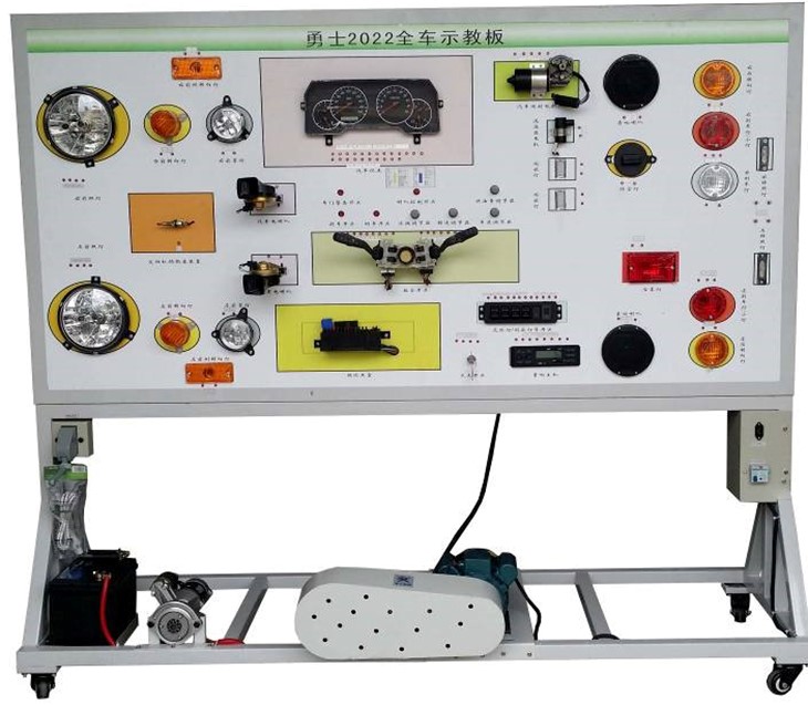 勇士全車電器實(shí)訓(xùn)設(shè)備采用 全新新勇士柴油機(jī)整車電器實(shí)物為基礎(chǔ),充分展示汽車儀表系統(tǒng)、燈光系統(tǒng)、雨刮系統(tǒng)、喇叭系統(tǒng)、發(fā)動(dòng)機(jī)電器系統(tǒng)、起動(dòng)系統(tǒng)和充電系統(tǒng)等汽車電器各系統(tǒng)的組成結(jié)構(gòu)和工作過程。