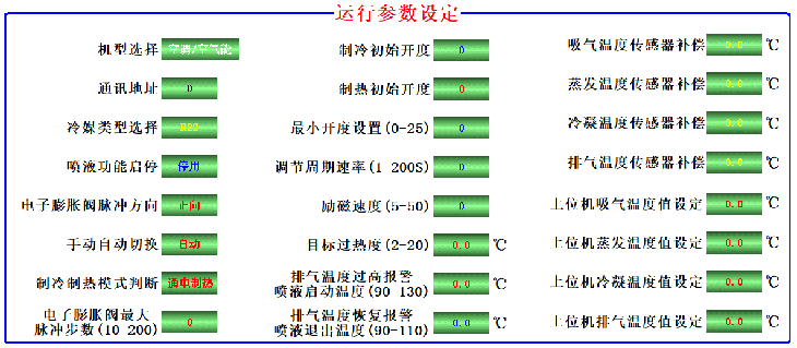 5. 動(dòng)畫模式:觸摸屏或軟件連接模式下:可顯示壓縮機(jī)排氣溫度、吸氣溫度、冷凝溫度、蒸發(fā)溫度,可根據(jù)溫度實(shí)時(shí)調(diào)節(jié)機(jī)組過冷度。過熱度。