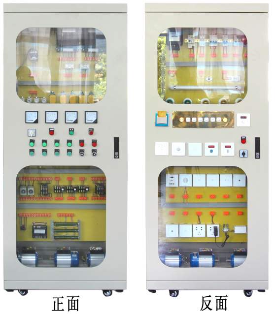 前后開門四玻電氣柜、柜內(nèi)按裝架、實(shí)訓(xùn)操作板、接線裝置、漏電斷路器、熔斷器、電流互感器、單相電度表、床頭控制面板、日光燈、白熾燈、單聯(lián)開關(guān)、單相異步電動(dòng)機(jī)、門鈴、插卡取電插座、請(qǐng)勿打擾插座、聲光控延時(shí)開關(guān)、人體自動(dòng)感應(yīng)開關(guān)、觸摸延時(shí)開關(guān)感應(yīng)開關(guān)、無(wú)線遙控開關(guān)、調(diào)光開關(guān)、燈座、插座、分配器、有線電視信息端座、音視頻信息端座、電話信息端座、網(wǎng)絡(luò)信息端座、三相四線有功電度表、接觸器、中間繼電器、時(shí)間繼電器、熱繼電器、行程開關(guān)、按鈕、信號(hào)燈、萬(wàn)能轉(zhuǎn)換開關(guān)、電壓表、電流表、三相電機(jī)、聲光報(bào)警器、檢修開關(guān)、報(bào)警選擇開關(guān)和故障開關(guān)等。