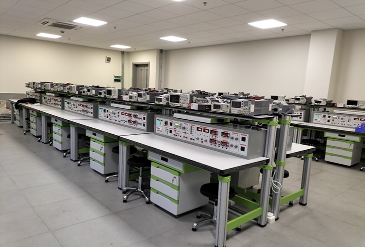 電路數(shù)電模電實(shí)驗(yàn)平臺(tái)、模擬電路實(shí)驗(yàn)實(shí)訓(xùn)室設(shè)備作為基礎(chǔ)實(shí)驗(yàn)室,可承擔(dān)電子系、通信系和自動(dòng)化系相關(guān)專業(yè)的《模擬電路》、《高頻電路》、《電子測(cè)量》等課程的所有實(shí)驗(yàn)及仿真,以及電子和通信類專業(yè)綜合課程實(shí)訓(xùn)、畢業(yè)論文(設(shè)計(jì))等。電路數(shù)電模電實(shí)驗(yàn)平臺(tái)主要培養(yǎng)了學(xué)生的專業(yè)基礎(chǔ)知識(shí)素養(yǎng),提高了學(xué)生的實(shí)驗(yàn)?zāi)芰蛻?yīng)用能力,并為教師教學(xué)創(chuàng)新、本科生畢業(yè)設(shè)計(jì)等提供了有利條件。