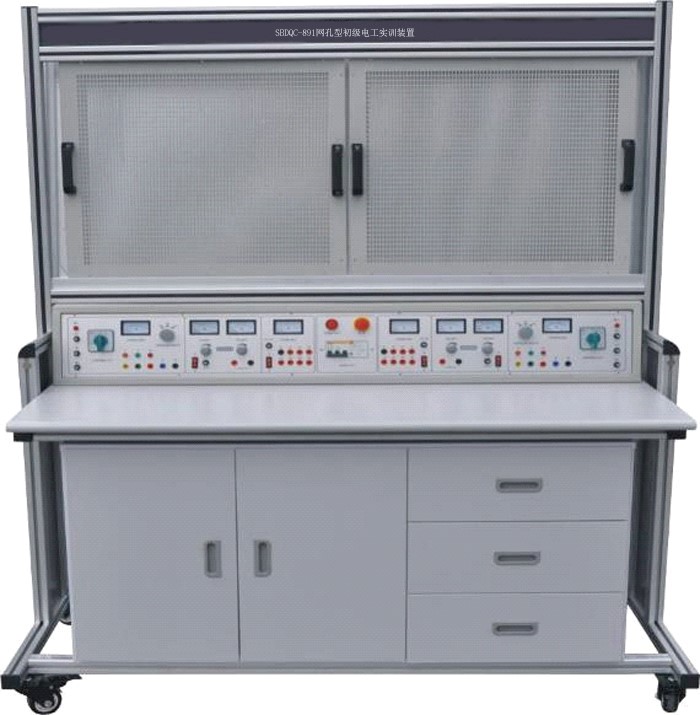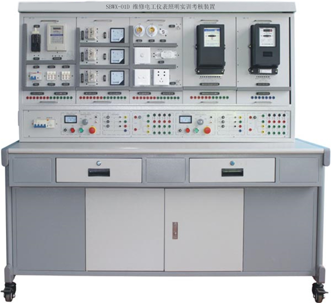 初級維修電工實(shí)訓(xùn)室設(shè)備可作為維修電工考核裝置,有可在網(wǎng)孔板上進(jìn)行照明器件及線路的安裝,電工儀表測量線路的安裝、電工儀表測量線路的安裝、配電盤的裝配訓(xùn)練,電動機(jī)的控制線路安裝訓(xùn)練。
