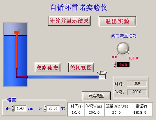 仿真演示軟件;能讓學(xué)生在電腦上更直觀地觀看模擬動態(tài)實驗,比如可以做成動畫軟件。移動式不銹鋼實驗臺、有機玻璃整流穩(wěn)壓水箱、雷諾管、顏料盒、顏料針管、計量箱、PVC板水箱、防腐潛水泵、循環(huán)管閥、7寸觸摸顯示屏、流量數(shù)顯裝置、控制箱、溫度傳感器DS18B20。